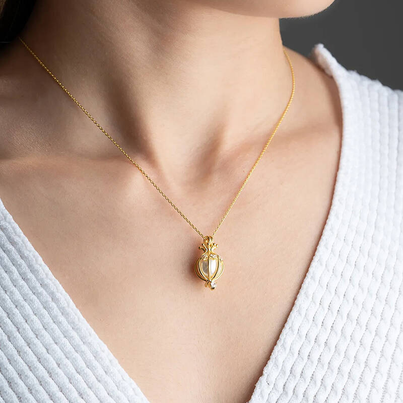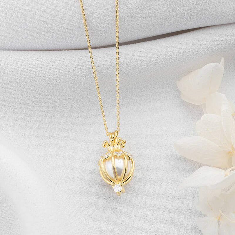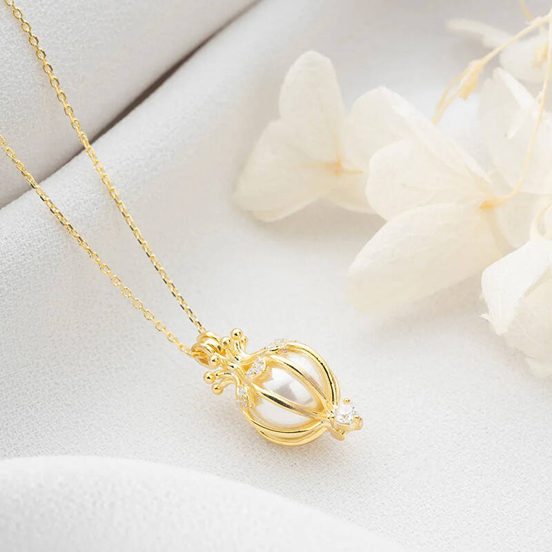Vaoov 925 Ayar Gümüş İncili Kafes Kolye