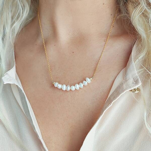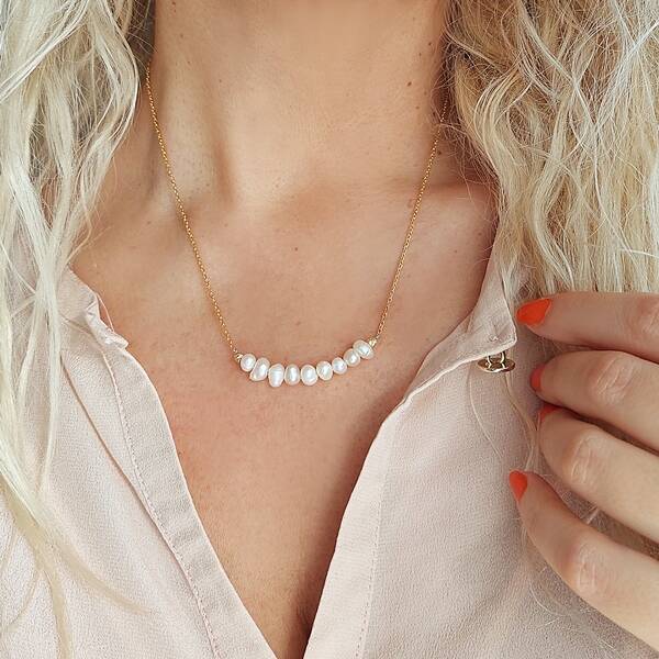 Vaoov 925 Ayar Gümüş Köşeli Zincirli İnci Kolye