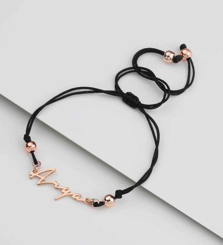 Vaoov 925 Ayar Gümüş İpli El Yazılı Kişiye Özel Bileklik