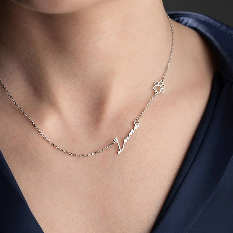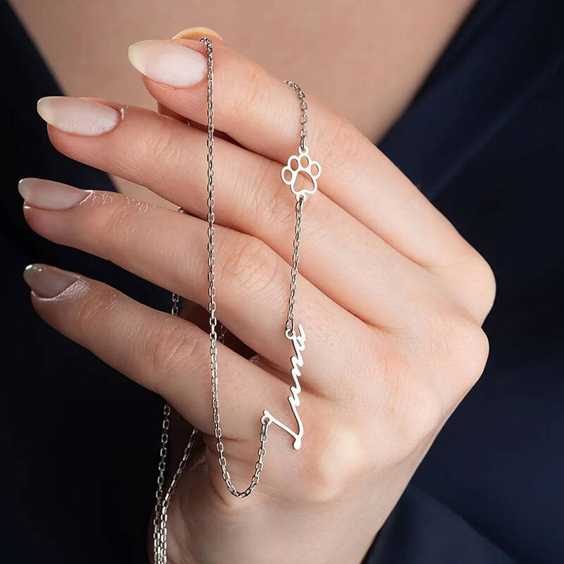 Vaoov 925 Ayar Gümüş İsimli Pati Kolye
