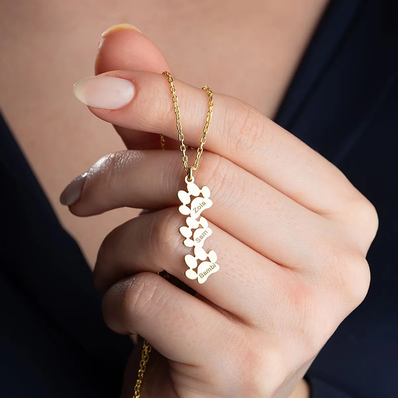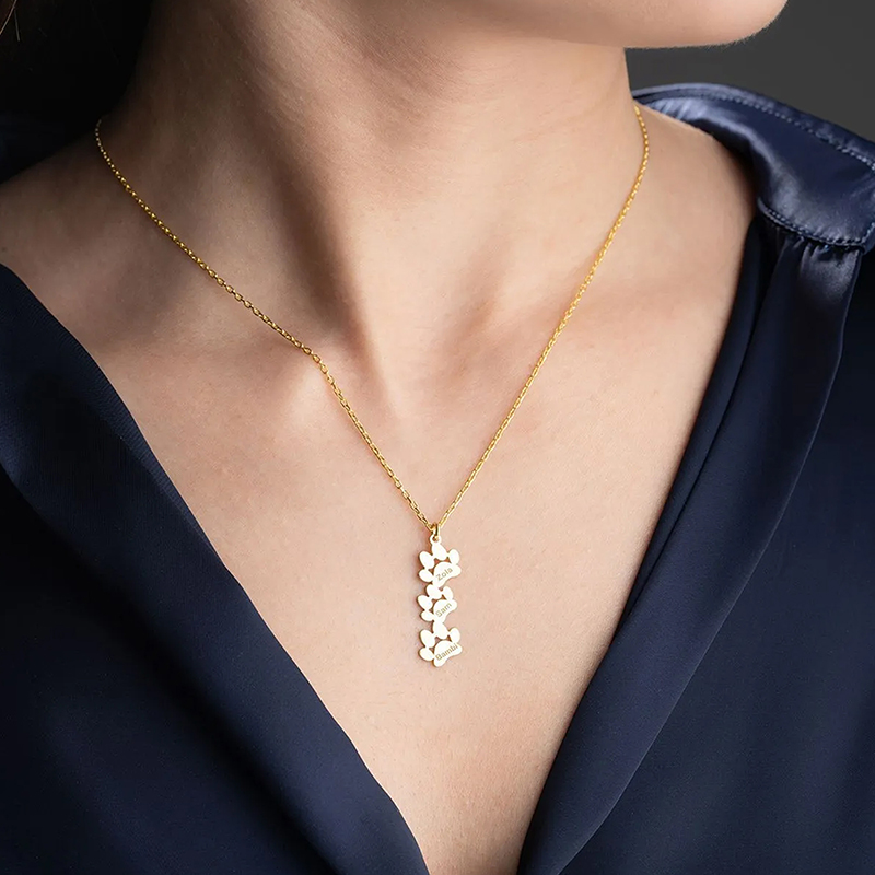 Vaoov 925 Ayar Gümüş İsimli Üçlü Pati Kolye Kolye