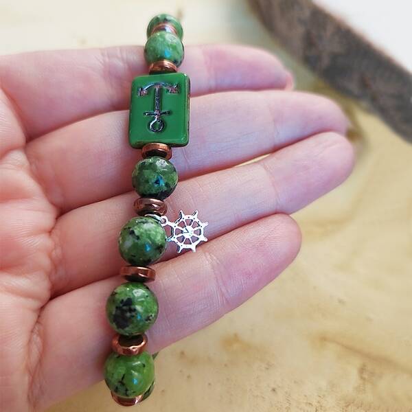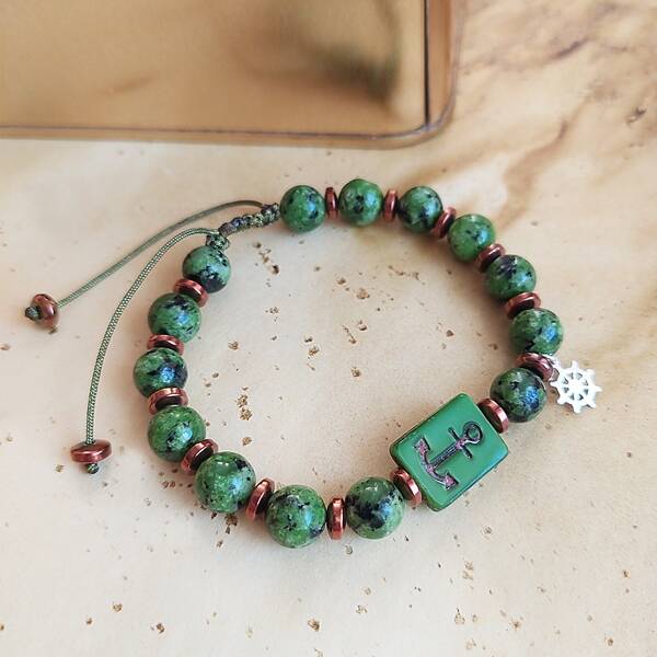 Vaoov 925 Ayar Gümüş Jade ve Hematit Taşlı Çapa Erkek Bileklik