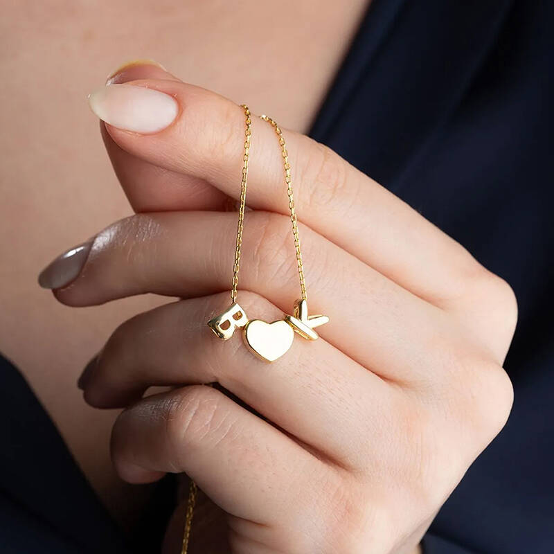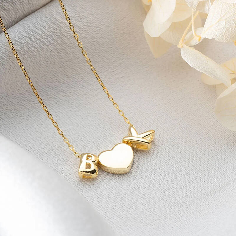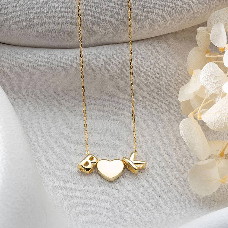 Vaoov 925 Ayar Gümüş Kalp ve İki Harfli Hediye Kolye