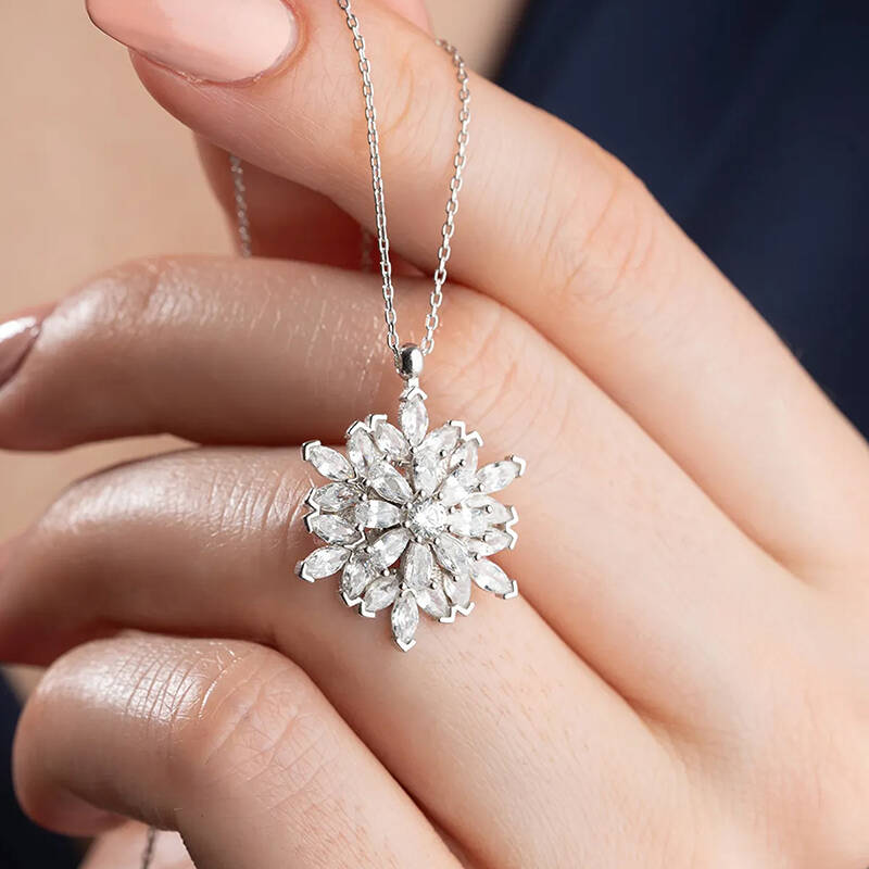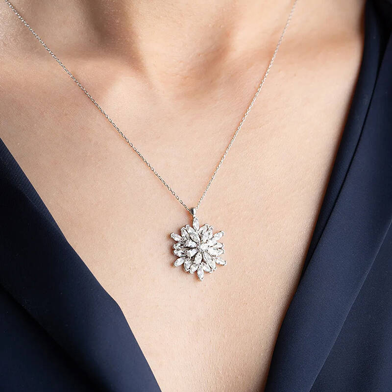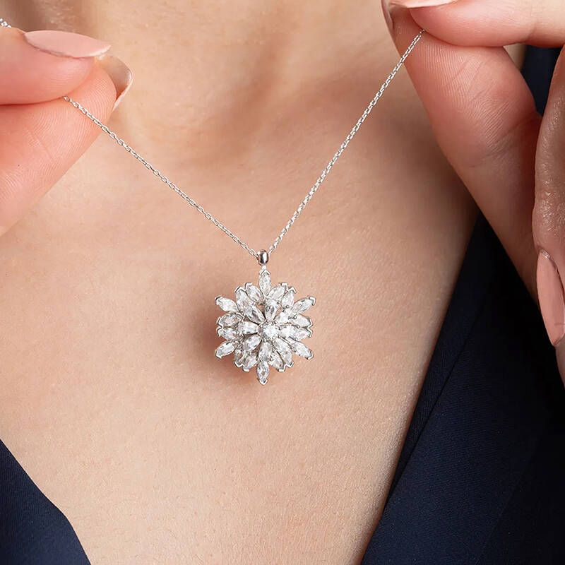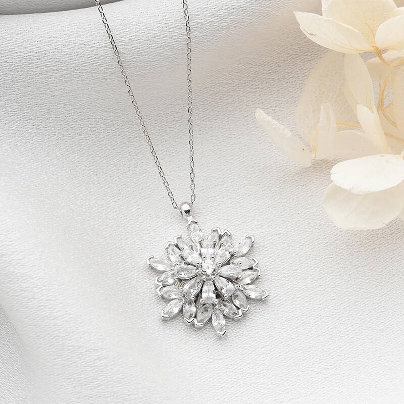 Vaoov 925 Ayar Gümüş Katmerli Kamelya Çiçeği Kolye