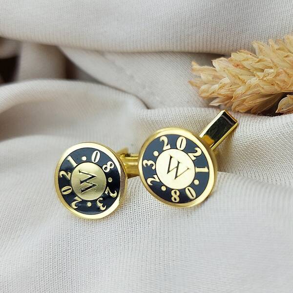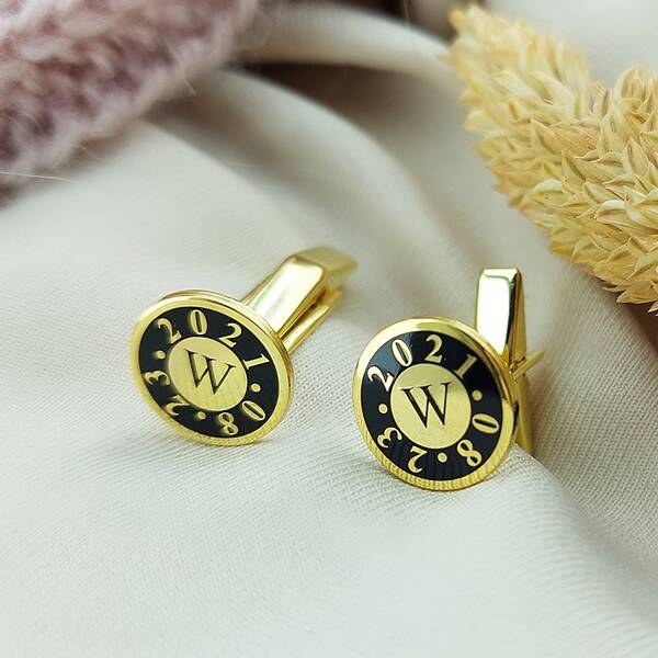 Vaoov 925 Ayar Gümüş Kişiye Özel Harfli Erkek Kol Düğmesi