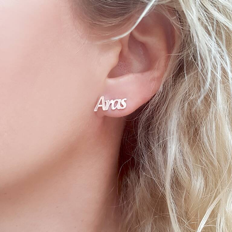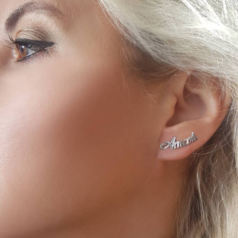 Vaoov 925 Ayar Gümüş Kişiye Özel Kadın Hediye İsimli Küpe