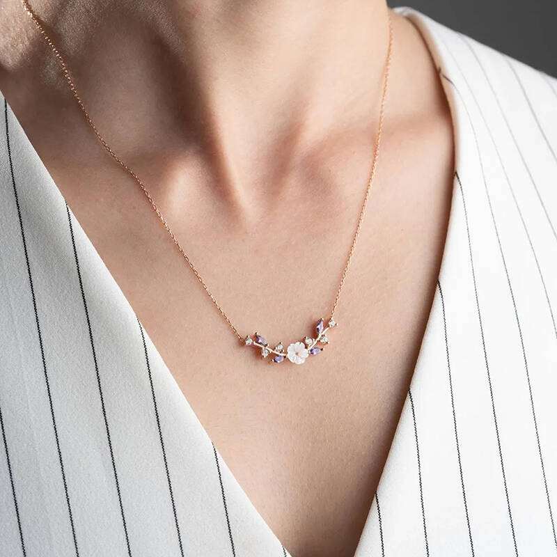 Vaoov 925 Ayar Gümüş Lila Taşlı Bahar Dalı Kolye