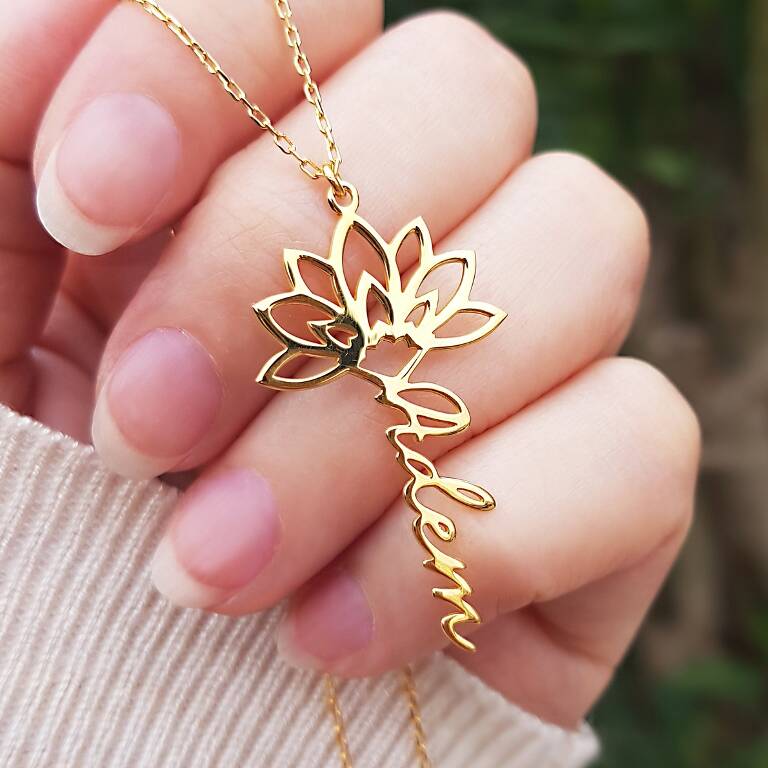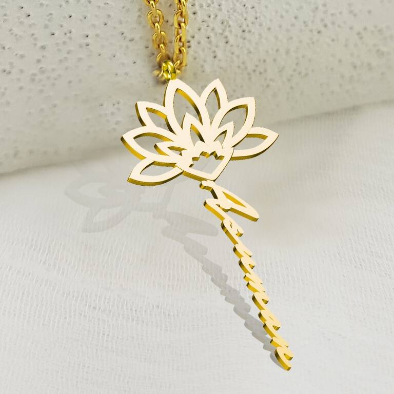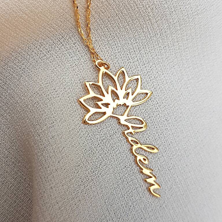 Vaoov 925 Ayar Gümüş Lotus İsim Kolye