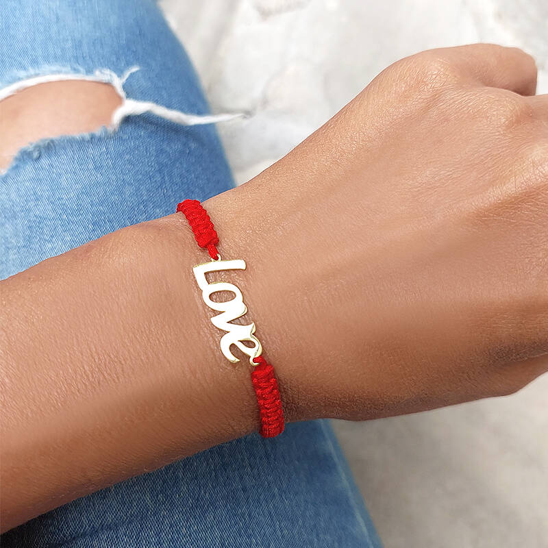 Vaoov 925 Ayar Gümüş Love Yazılı Kırmızı Makrome Örgü Bileklik