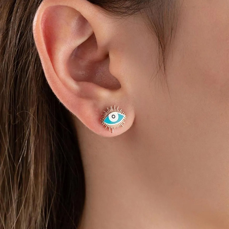 Vaoov 925 Ayar Gümüş Mavi Mineli Göz Küpe