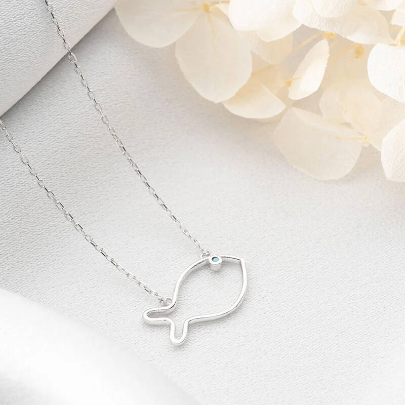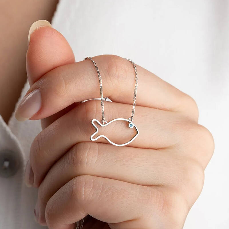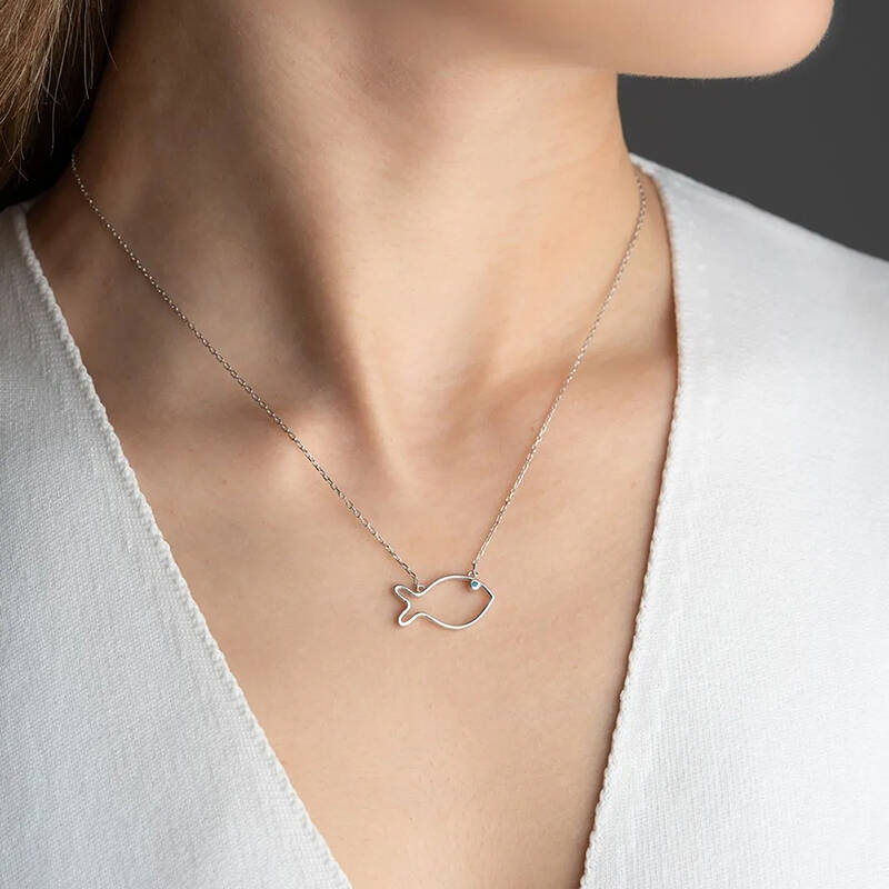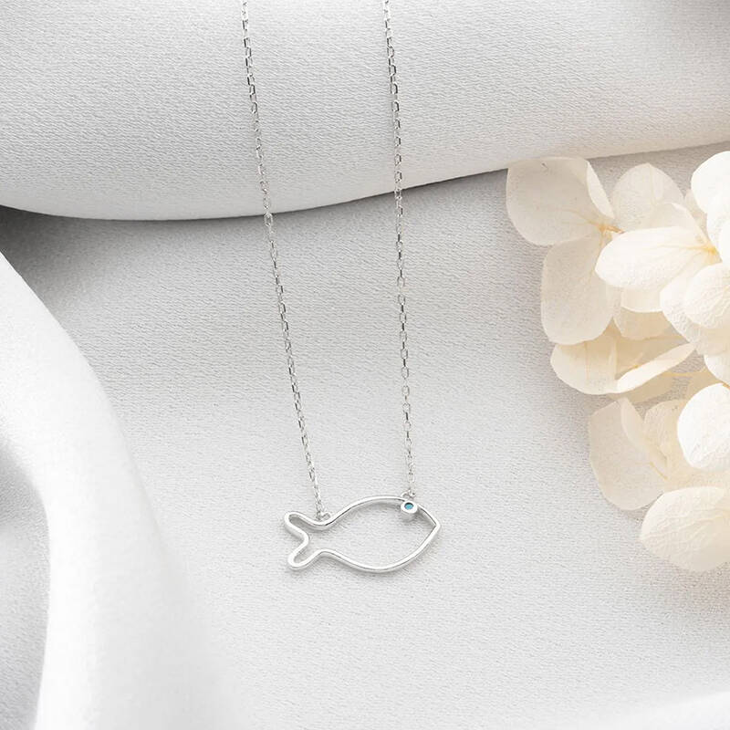 Vaoov 925 Ayar Gümüş Mavi Taşlı Minimalist Balık Kolye