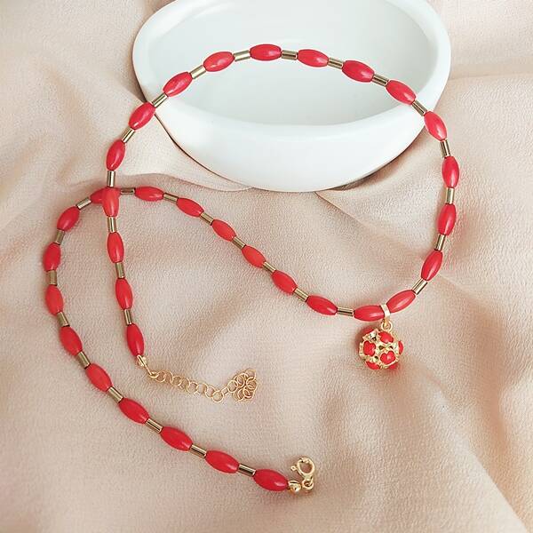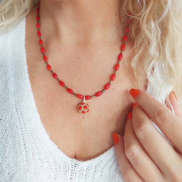Vaoov 925 Ayar Gümüş Mercan ve Hematit Taşlı Kolye