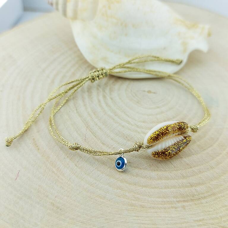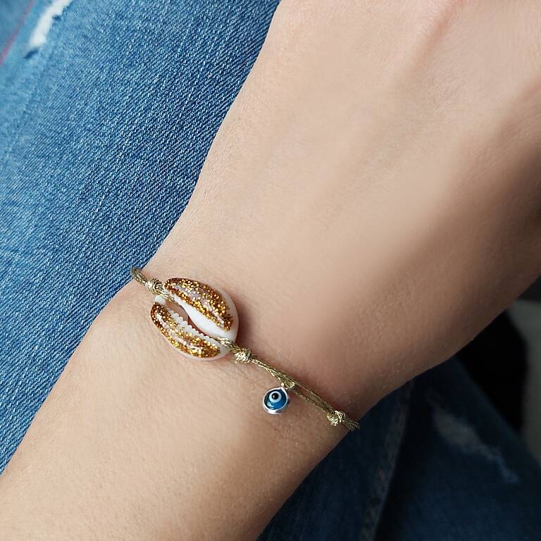Simli midye kabuğu ve el yapımı nazar