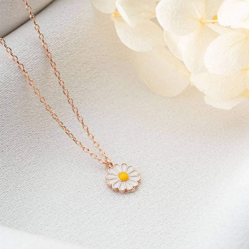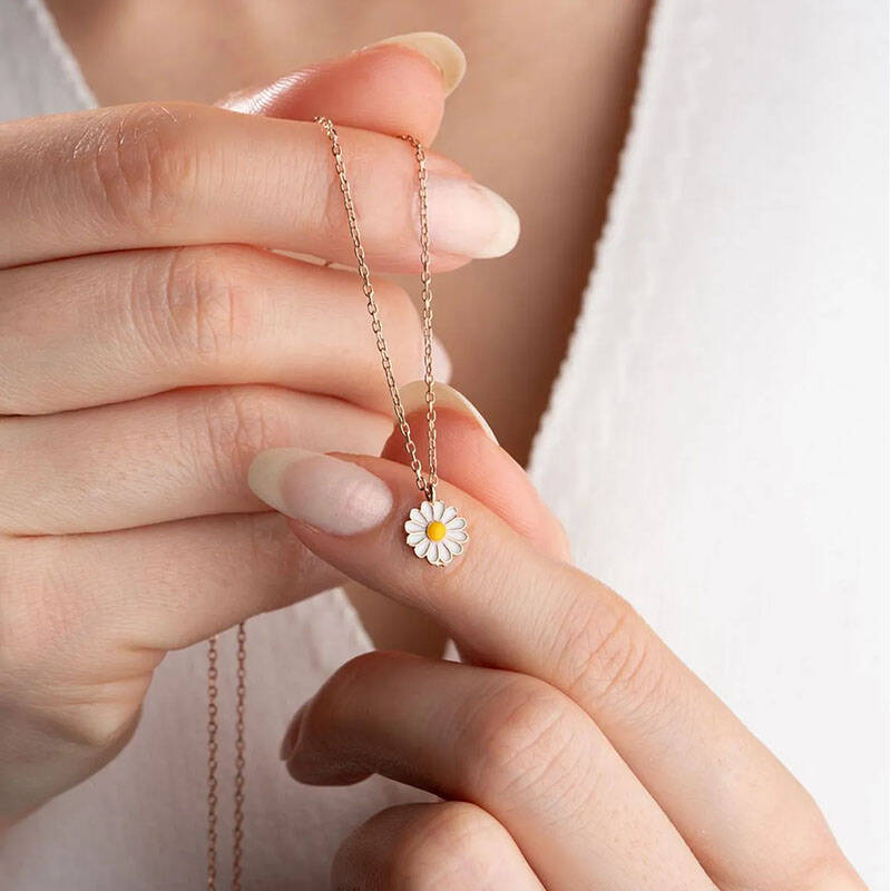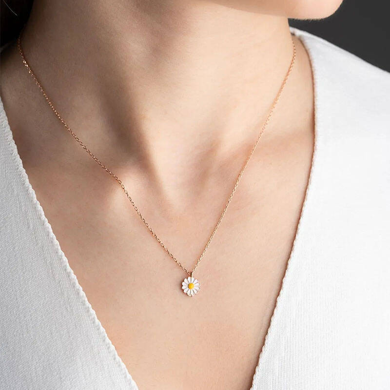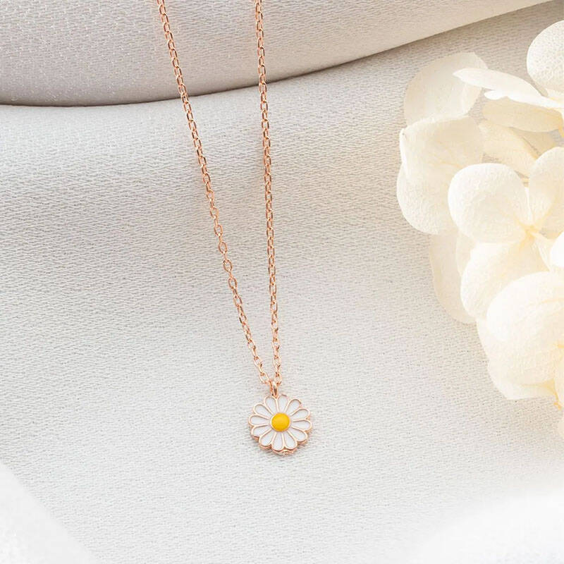 Vaoov 925 Ayar Gümüş Mineli Beyaz Papatya Kolye