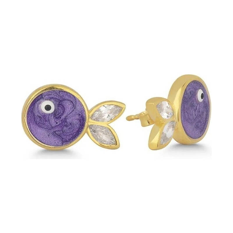 Vaoov 925 Ayar Gümüş Mineli Mor Balık Küpe