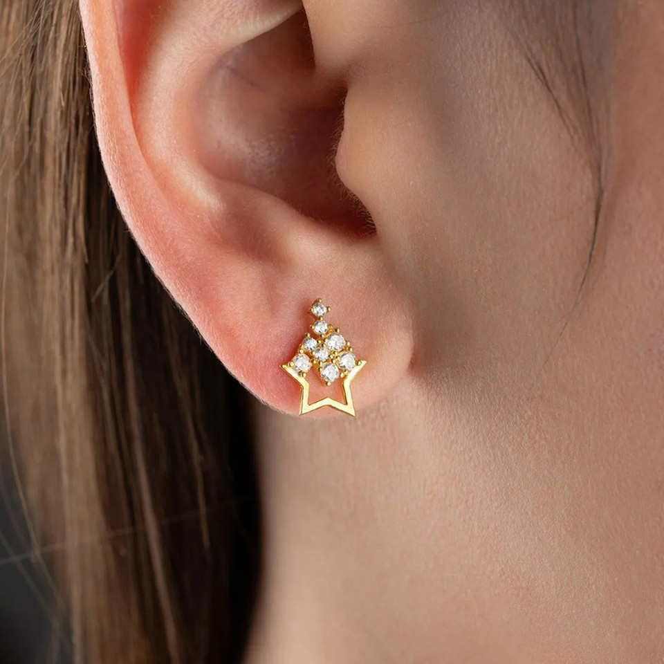 Vaoov 925 Ayar Gümüş Süzülen Taşlı Yıldız Küpe