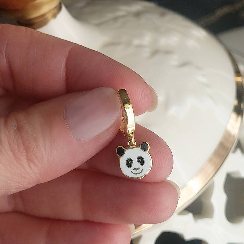 Vaoov 925 Ayar Gümüş Mineli Panda Küpe