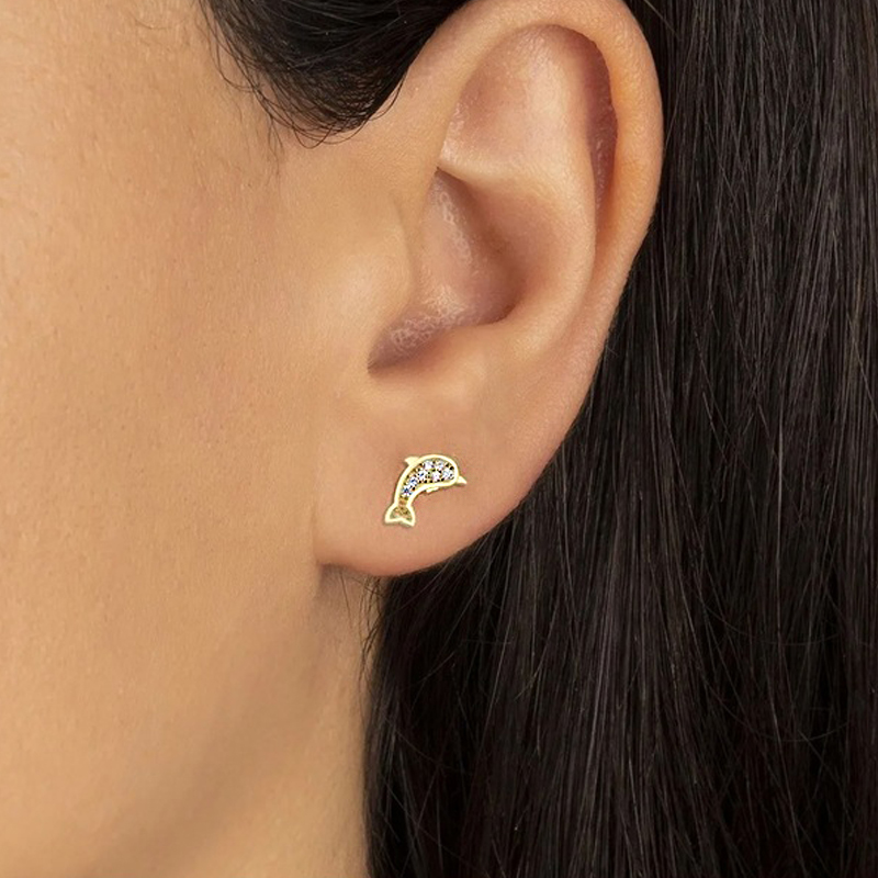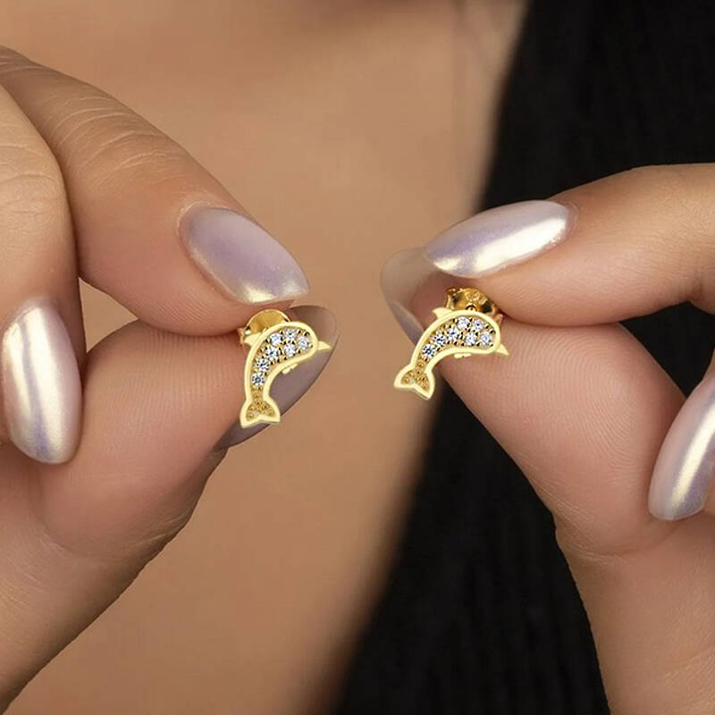 Vaoov 925 Ayar Gümüş Minimal Yunus Balığı Küpe