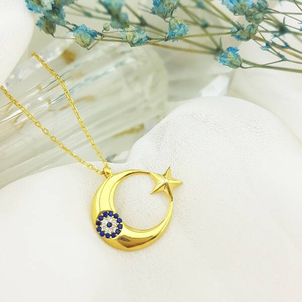 Vaoov 925 Ayar Gümüş Nazarlı Ay Yıldız Kolye