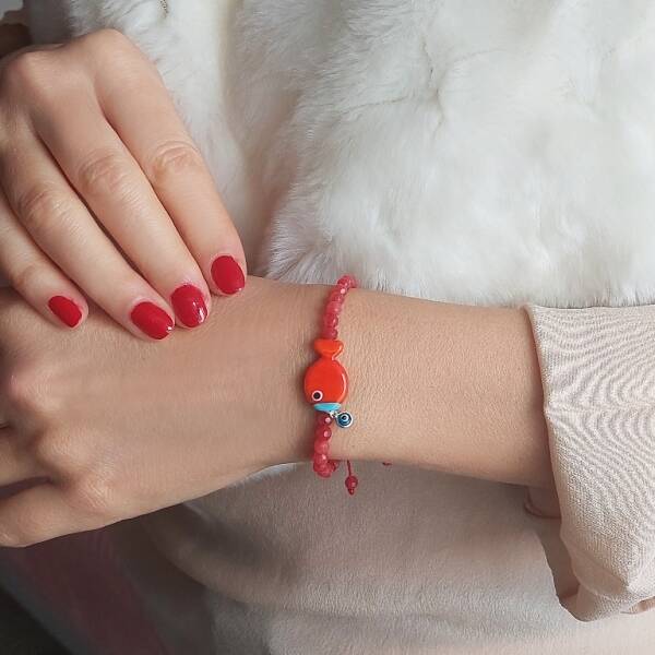 Vaoov 925 Ayar Gümüş Nazarlı Kırmızı Balık Bileklik