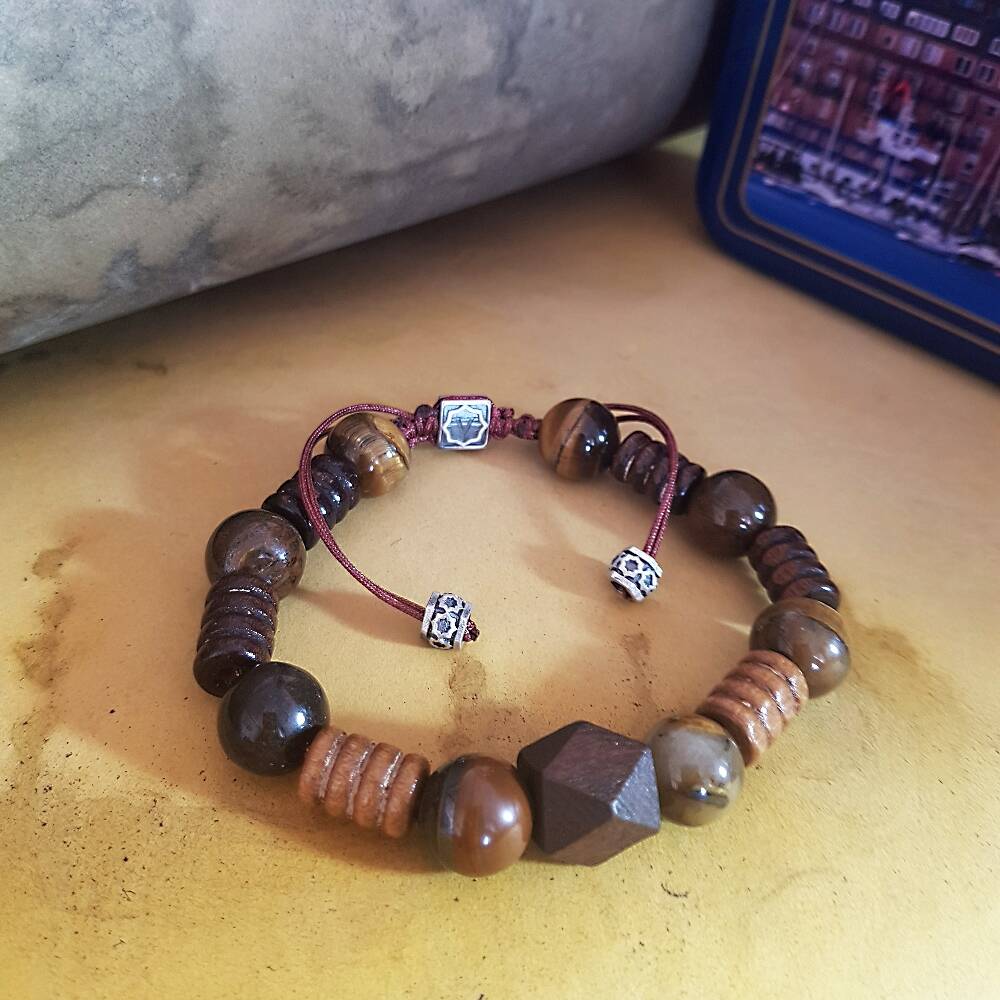 Vaoov 925 Ayar Gümüş Özel Kesim Ahşap ve Doğal Taşlı Erkek Bileklik