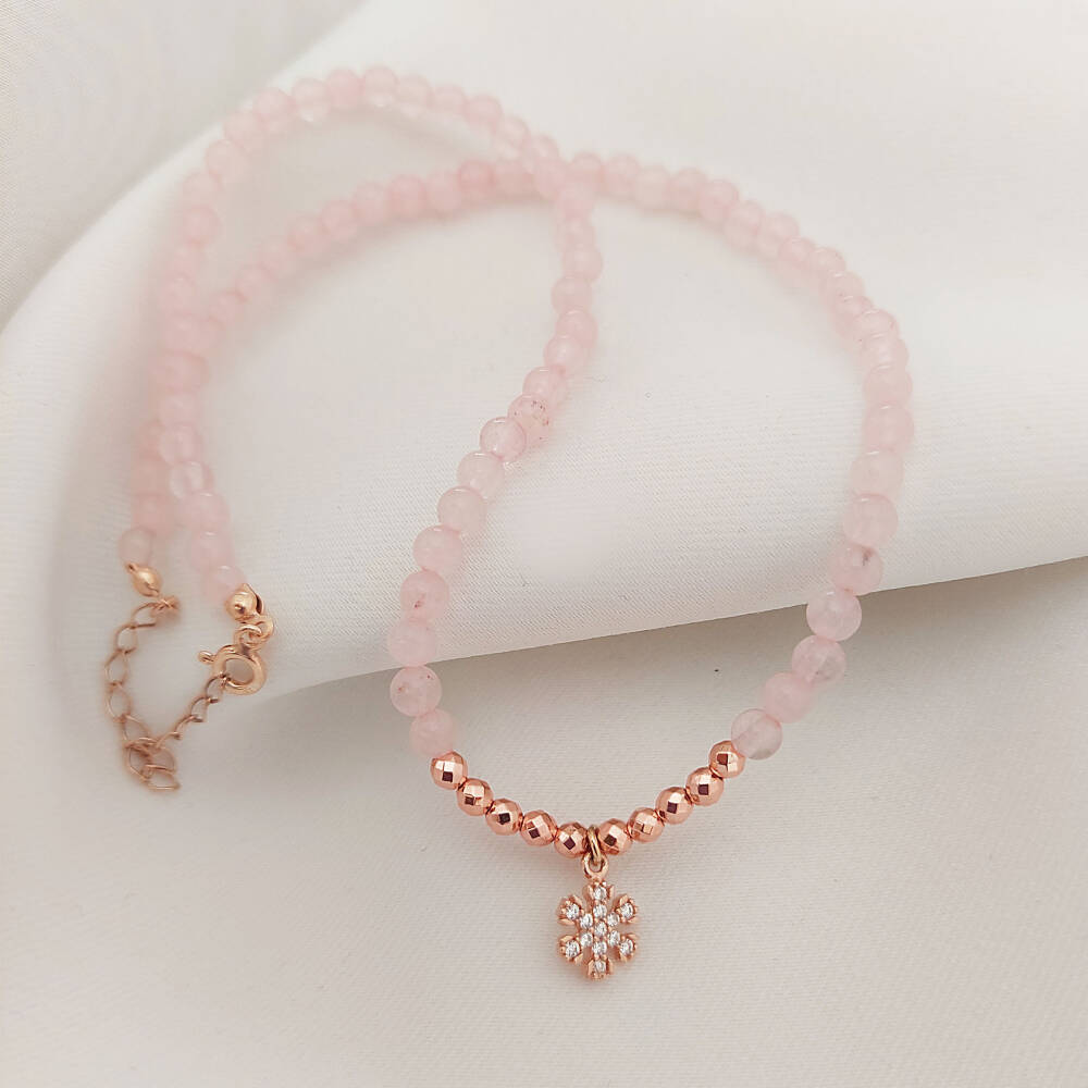 Vaoov 925 Ayar Gümüş Pembe Kuvars ve Hematit Taşlı Nazar Kolye