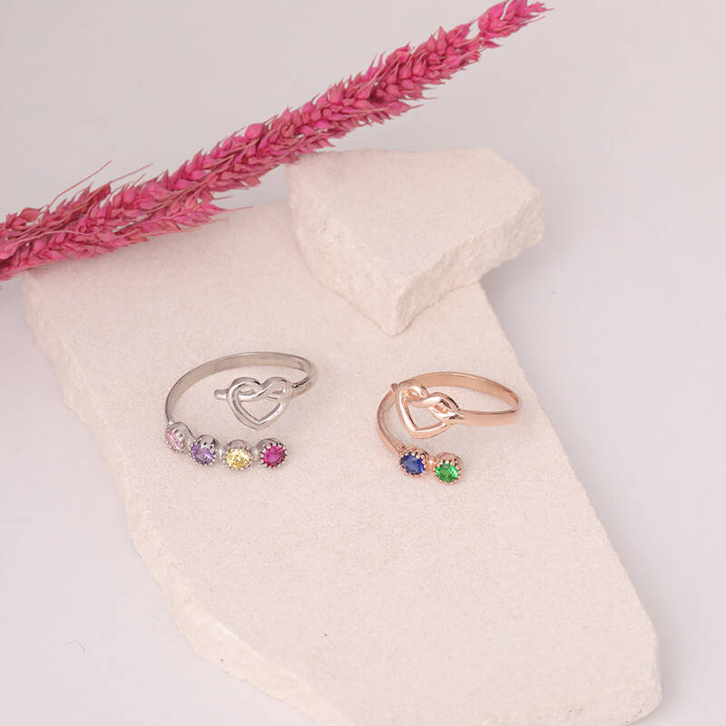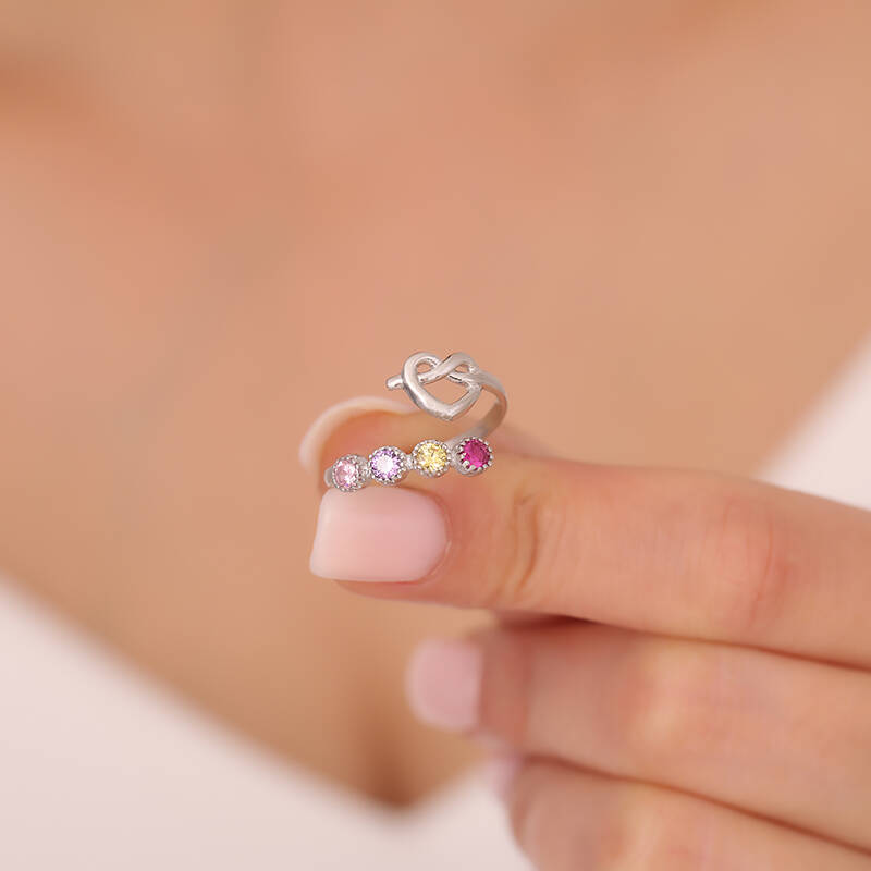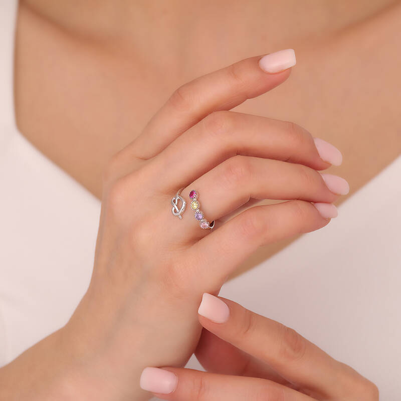 Vaoov 925 Ayar Gümüş Renkli Taşlı Kalp ve Sonsuzluk Yüzük