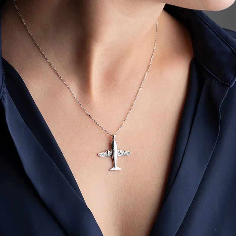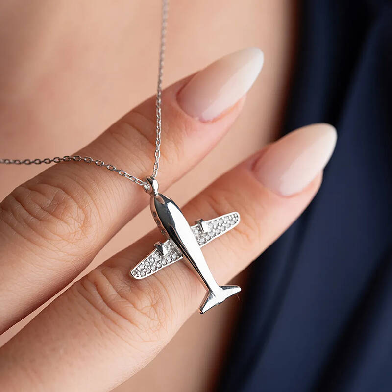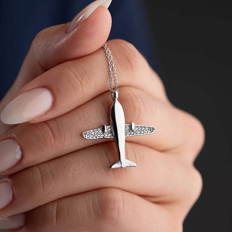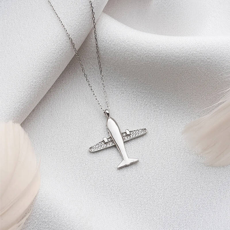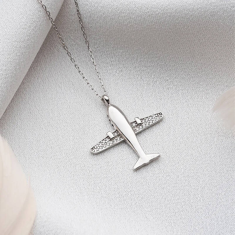 Vaoov 925 Ayar Gümüş Rodyum Kaplama Uçak Kolye
