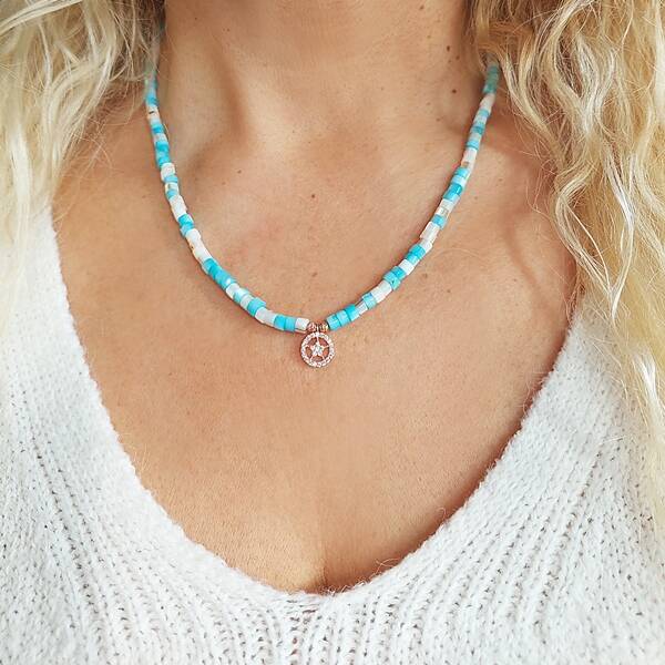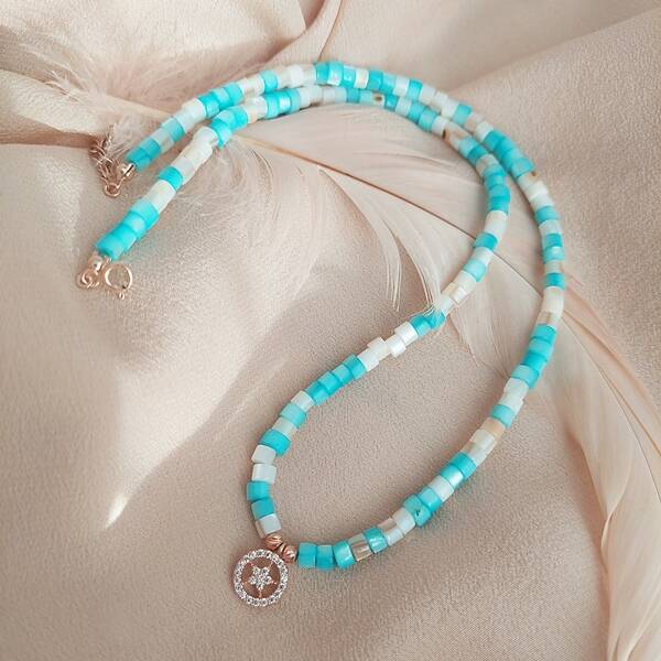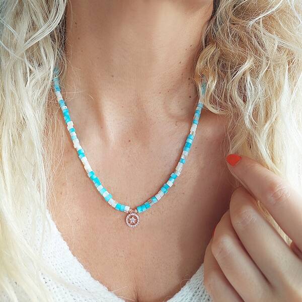 Vaoov 925 Ayar Gümüş Sedef Taşlı Yıldız Kolye