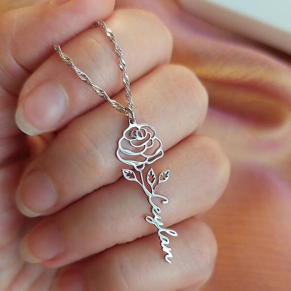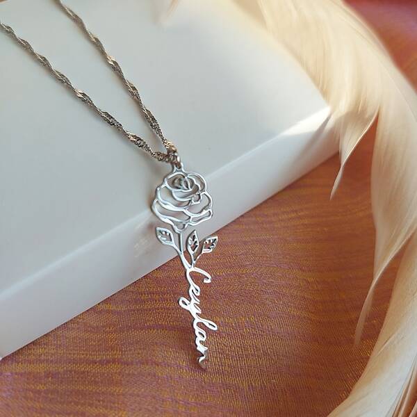 Vaoov 925 Ayar Gümüş Singapur Zincirli İsimli Gül Kolye
