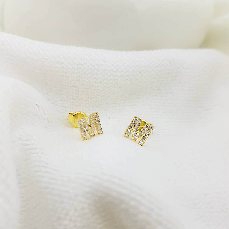 925 Ayar Gümüş Harfli Puzzle Küpe
