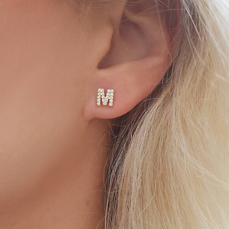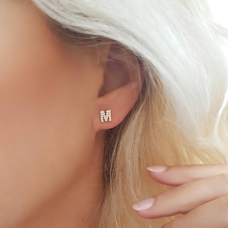 Vaoov 925 Ayar Gümüş Taşlı Harf Küpe