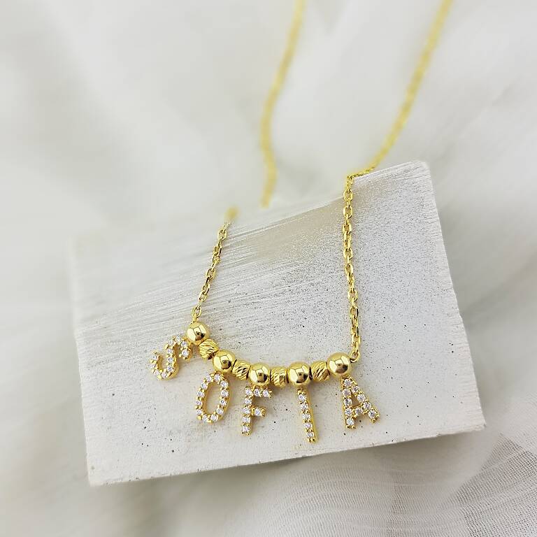 Vaoov 925 Ayar Gümüş Taşlı İsim Kolye
