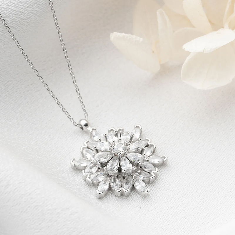 Vaoov 925 Ayar Gümüş Katmerli Kamelya Çiçeği Kolye