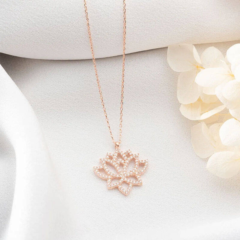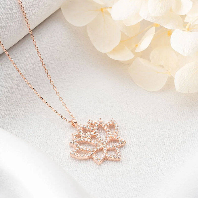 Vaoov 925 Ayar Gümüş Taşlı Lotus Kolye