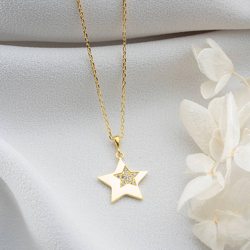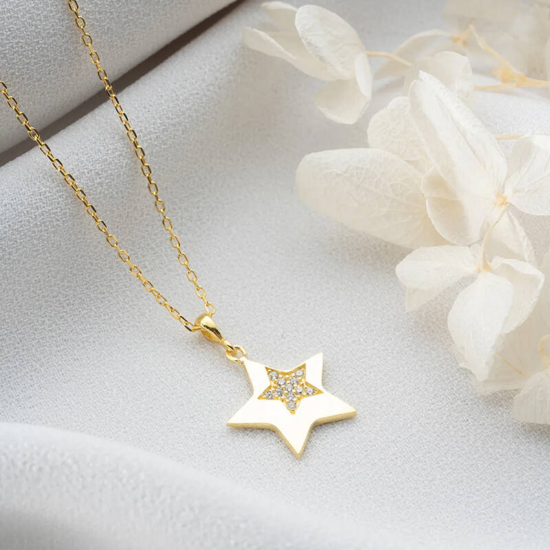 Vaoov 925 Ayar Gümüş Taşlı Yıldız Hediye Kolye
