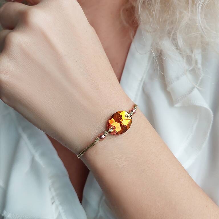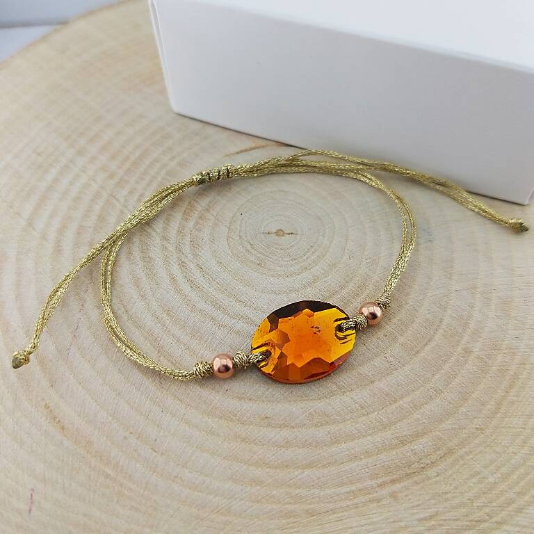 Vaoov 925 Ayar Gümüş Turuncu Taşlı İpli Bileklik