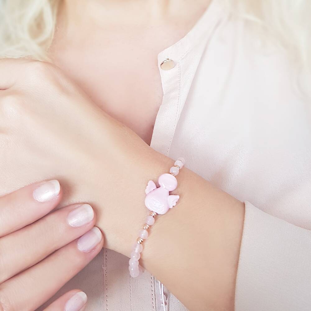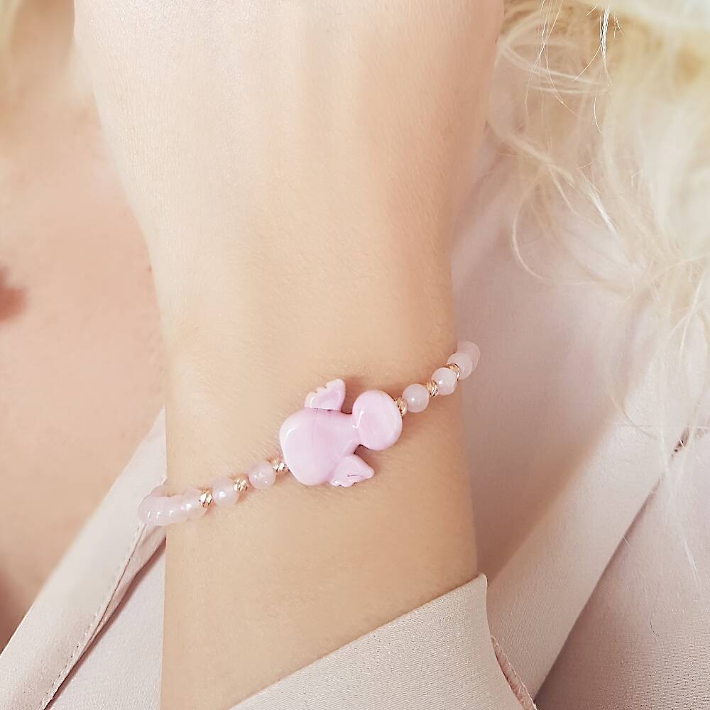 Vaoov El Yapımı Pembe Cam Melek Bileklik